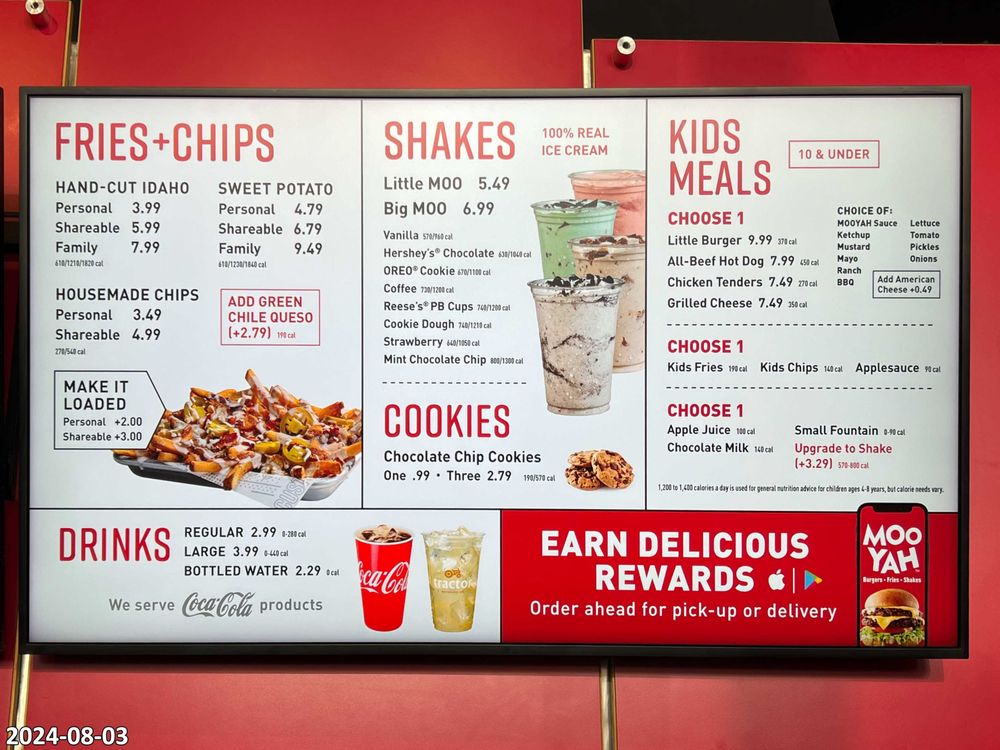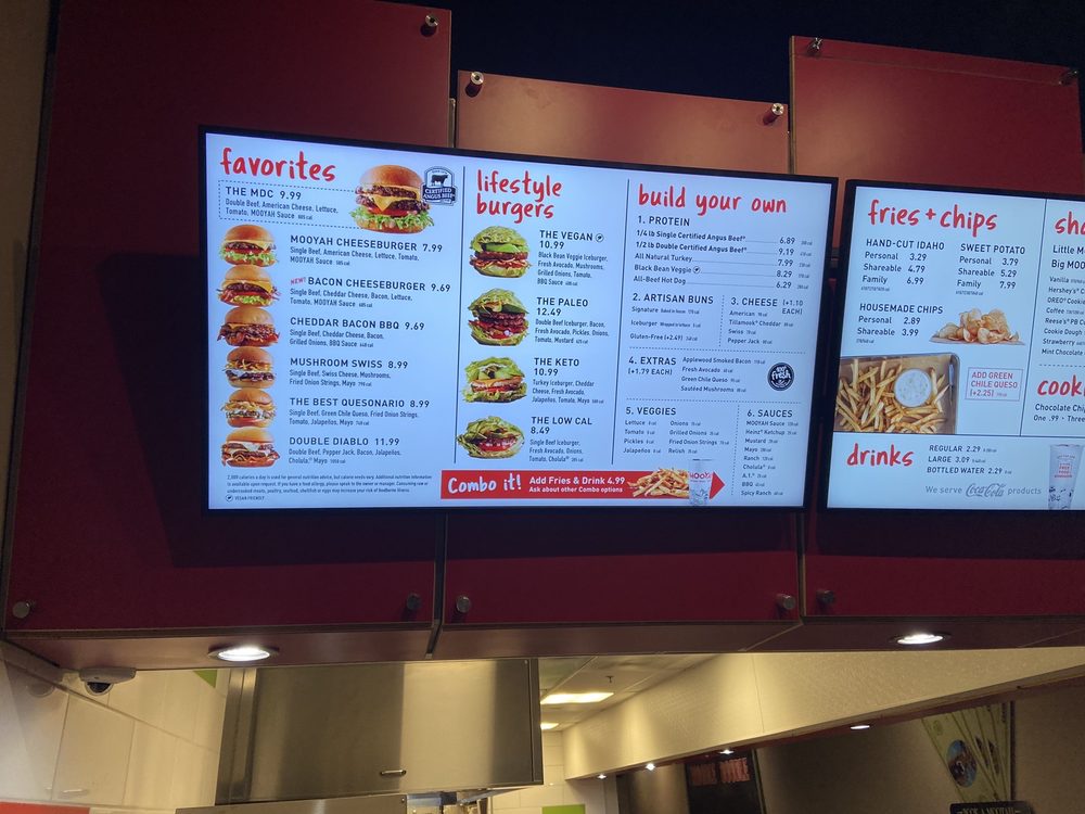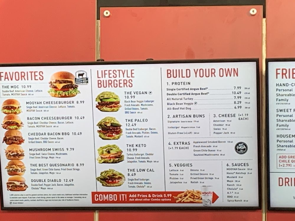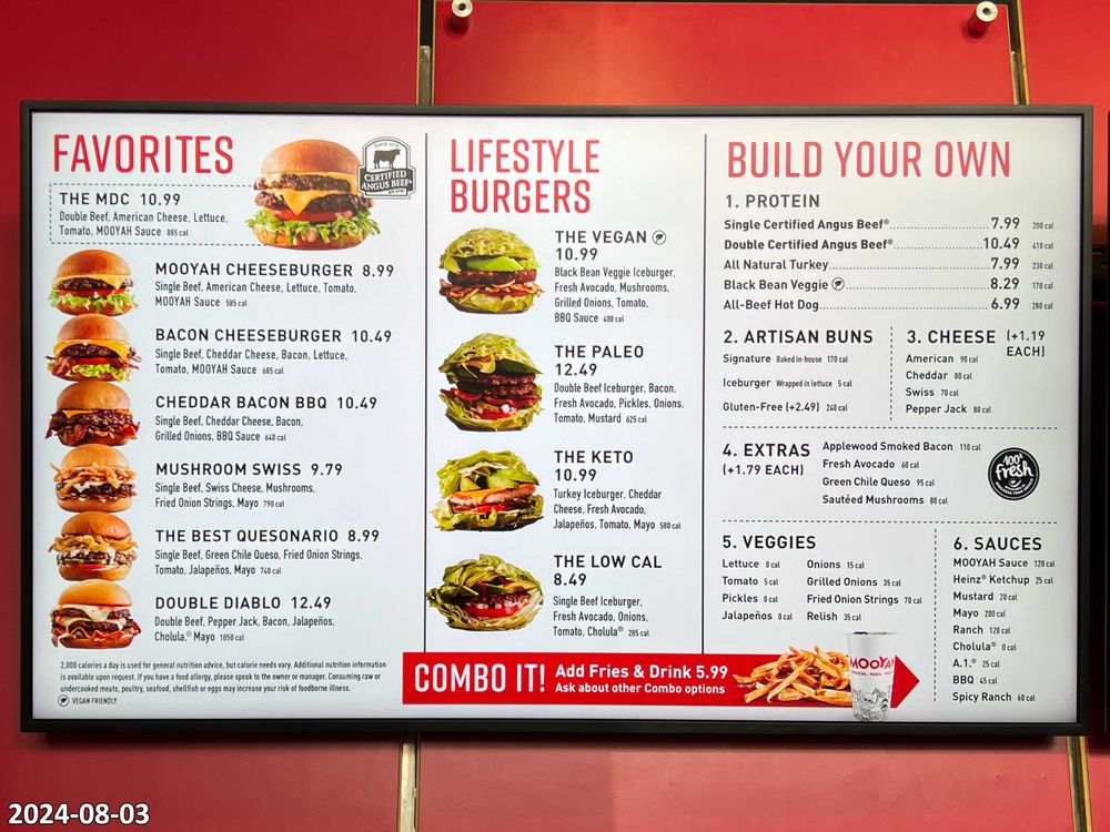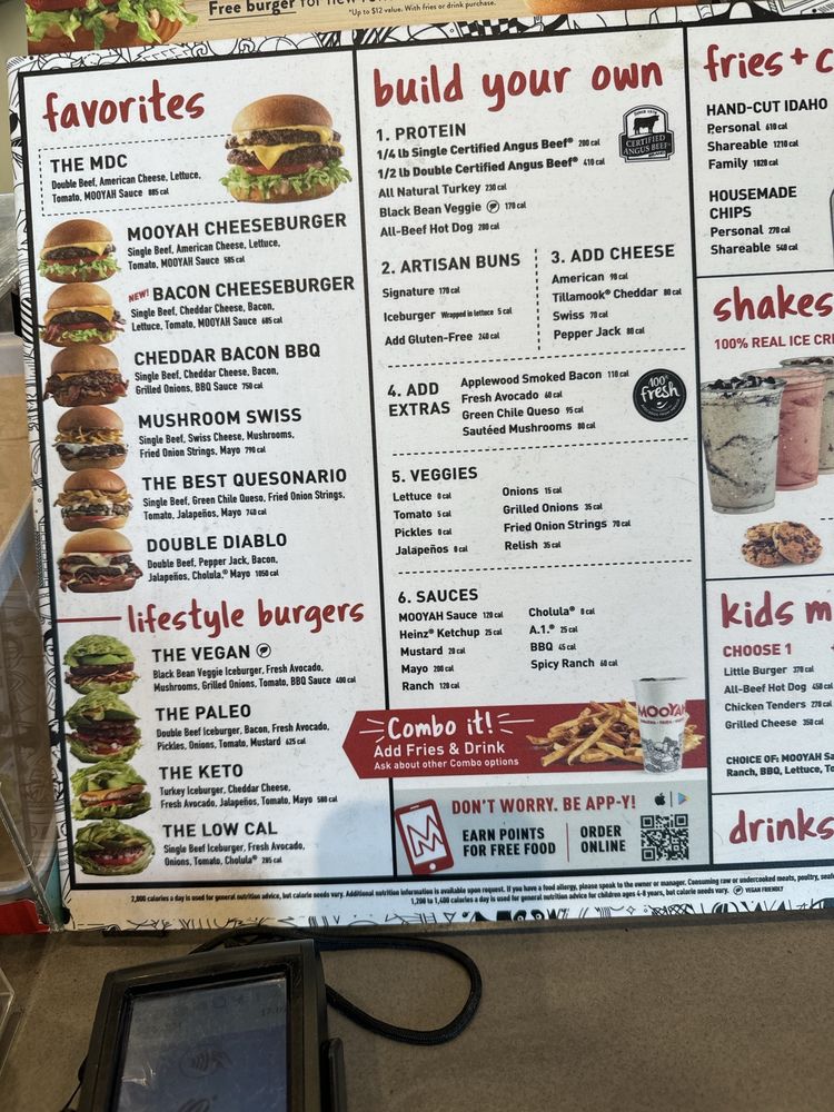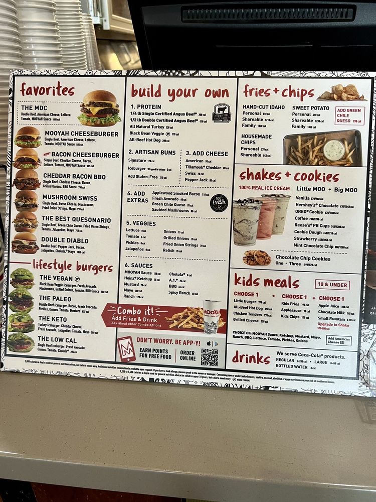 Introducing the menu at MOOYAH Burgers, Fries & Shakes, located in Irvine, CA. They offer a wide range of options from classic beef burgers like The MDC Double and MOOYAH Cheeseburger to indulgent choices like The Indulgent BBQ and The Hamburdog. For those with dietary preferences, the Lifestyle Burgers offer delicious vegan, paleo, keto, and low-calorie options. Customers praise the quality of fresh ingredients and the customizable nature of the menu. Some reviewers suggest that the fries can be hit or miss, but the burgers consistently receive high praise. With a clean and inviting atmosphere, excellent service, and reasonable prices, MOOYAH is a great spot for a satisfying meal. Don't miss out on their shakes and lemonade drinks, which add the perfect touch to your dining experience.
